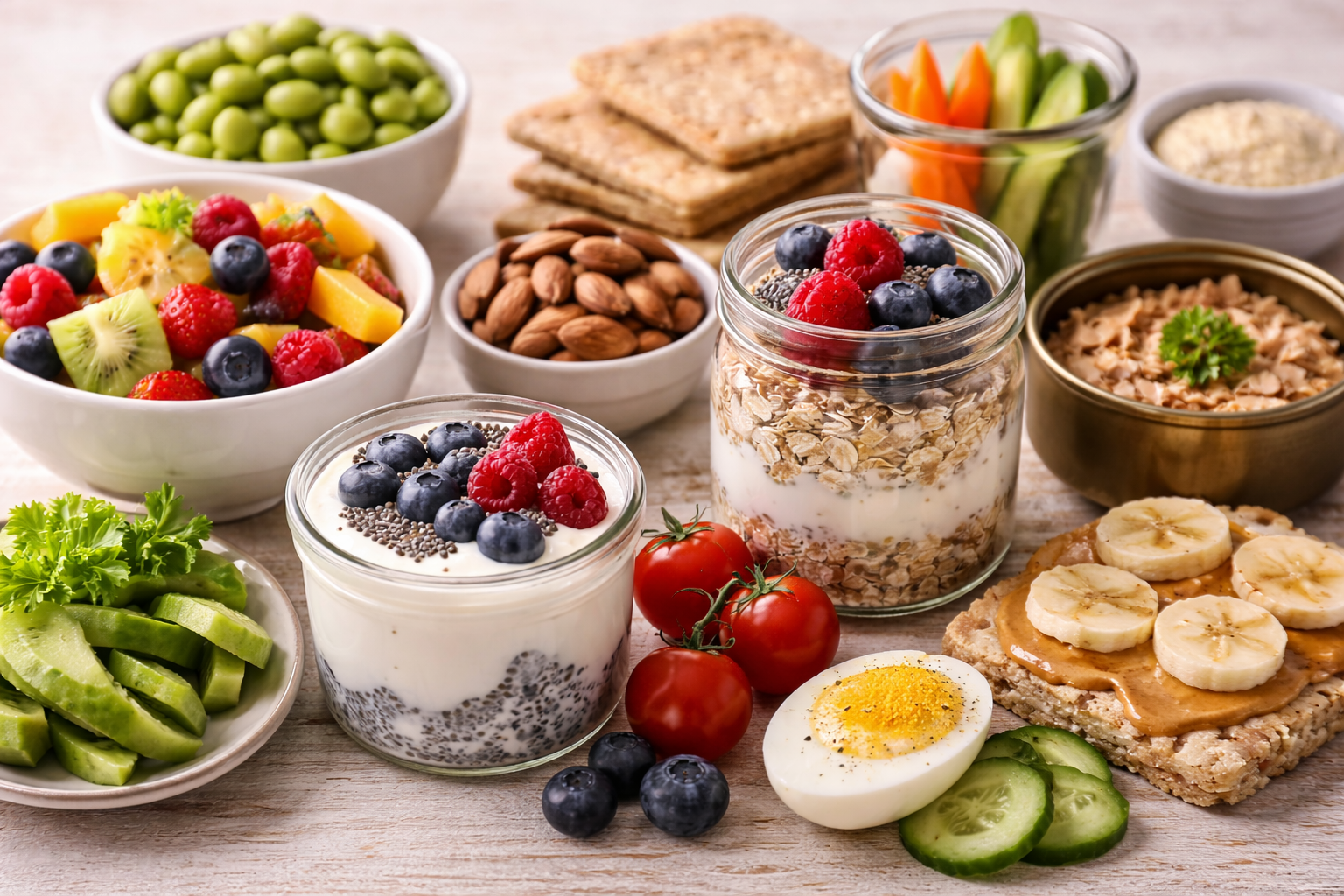 - Serat (buah utuh, oats, chia).