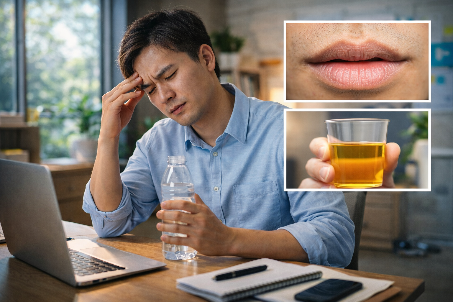 Warna urin sering menjadi petunjuk paling praktis. Jika warnanya kuning tua, tubuh kemungkinan butuh cairan.